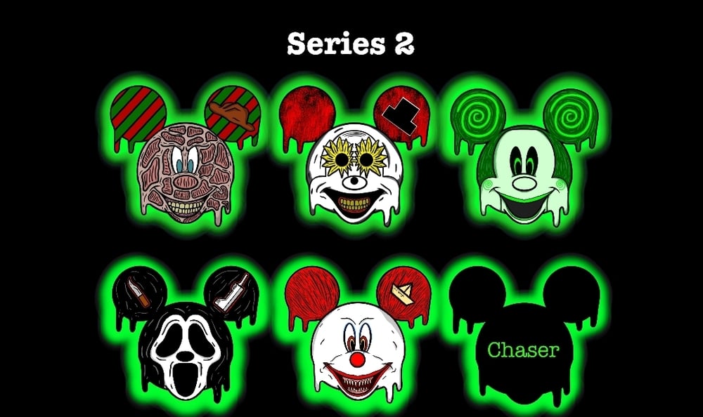 Series 2 will include another 5 classic horror mash ups with a secret chaser design! This is a hard enamel pin with a screen printed design, and each pin is 2.25" tall,double posted,and backstamped.