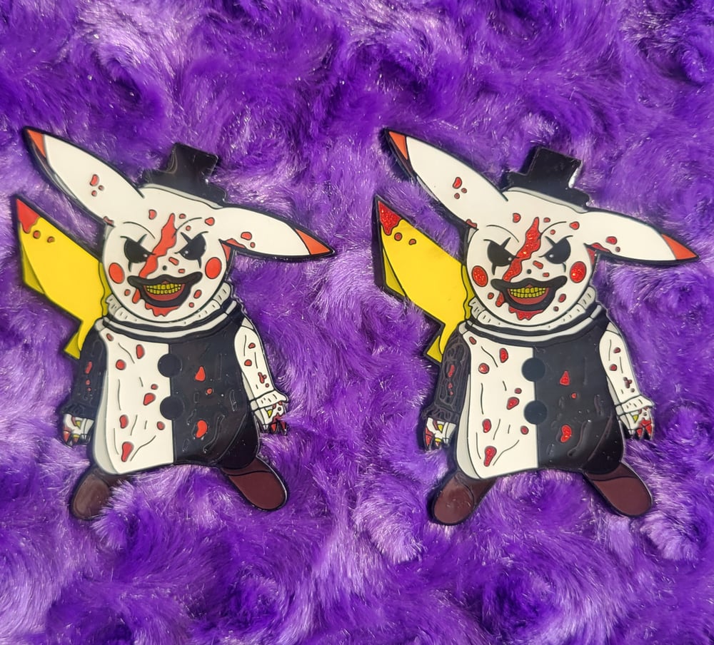 The newest Slashermon and the last enamel pin of 2024 is here! "Pikachu Art" is 2.75" tall, triple posted and backstamped. "Pikachu Art " comes in 2 variants "Glitter" and "Red Glow"!
